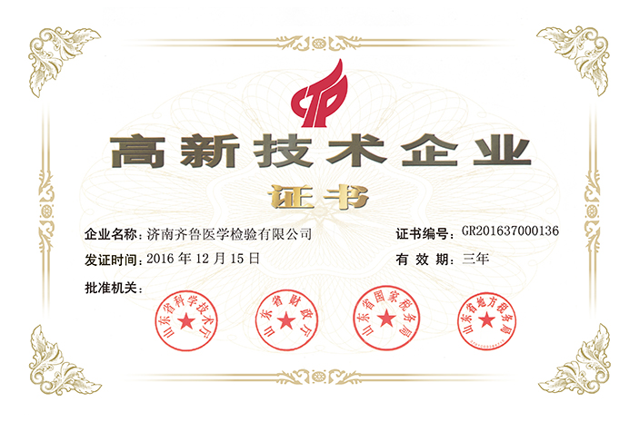 高新技术企业证书